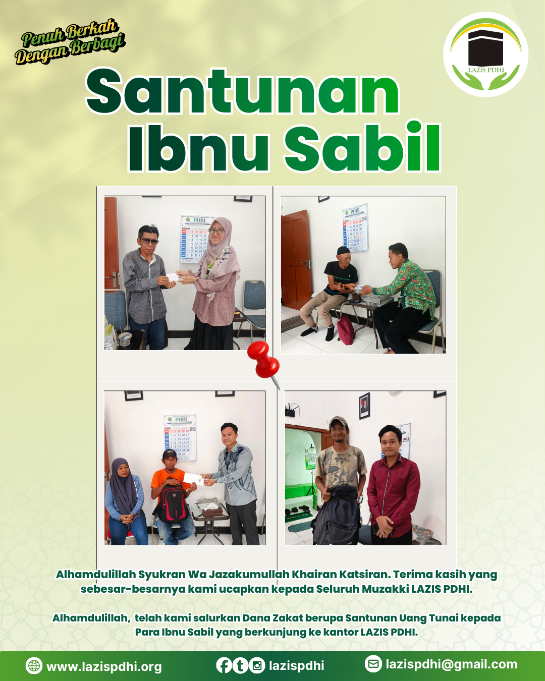 Seluruh upaya ini berjalan dalam semangat motto LAZIS PDHI: “Berbagi Setulus Hati.” Bagi LAZIS PDHI, berbagi bukan hanya menyerahkan bantuan fisik, tetapi menghadirkan rasa peduli, keikhlasan, dan ketenangan bagi mereka yang terbebani oleh keadaan. Ketulusan inilah yang diharapkan menjadi cahaya bagi setiap Ibnu Sabil yang sedang diuji di tengah perjalanan mereka.